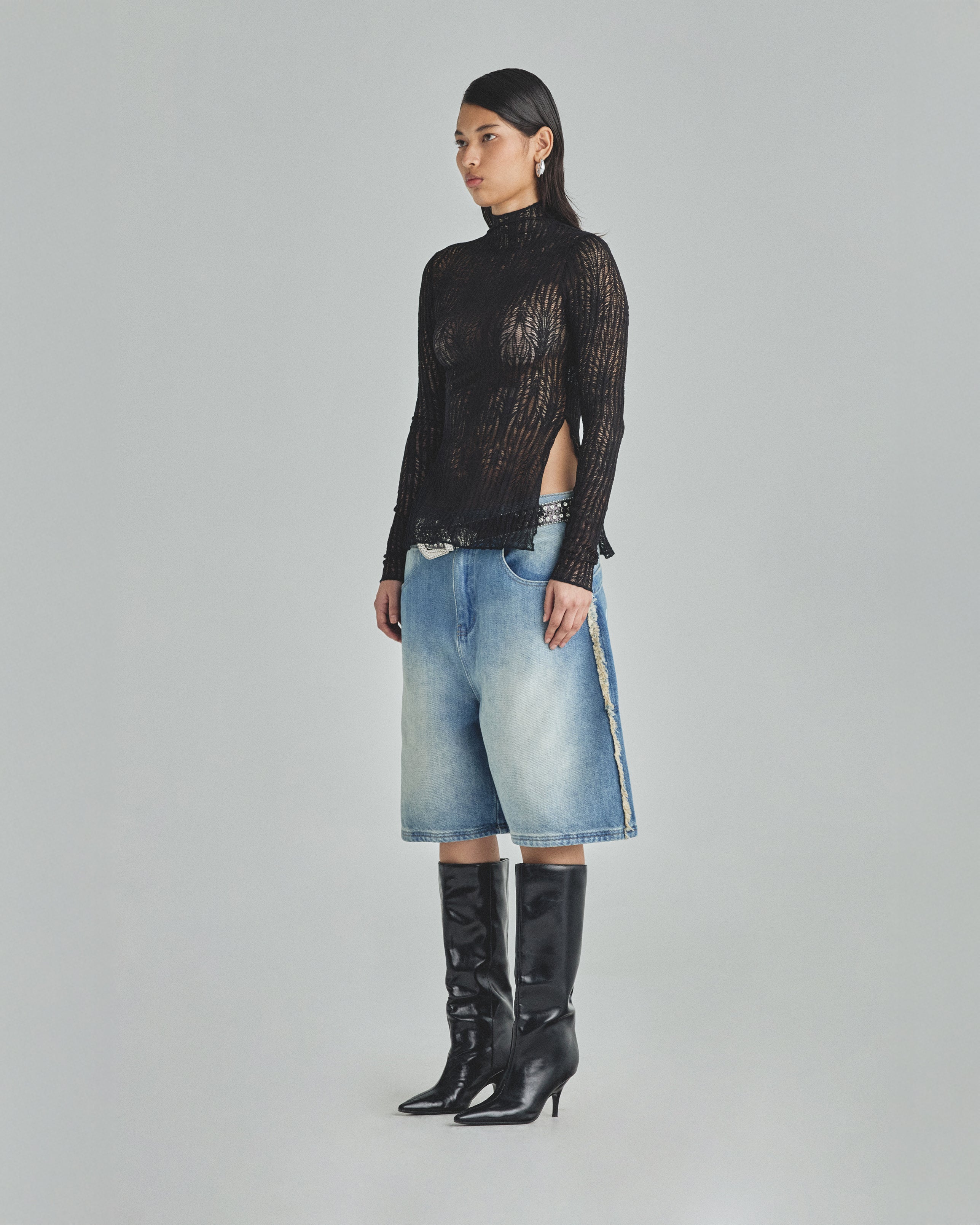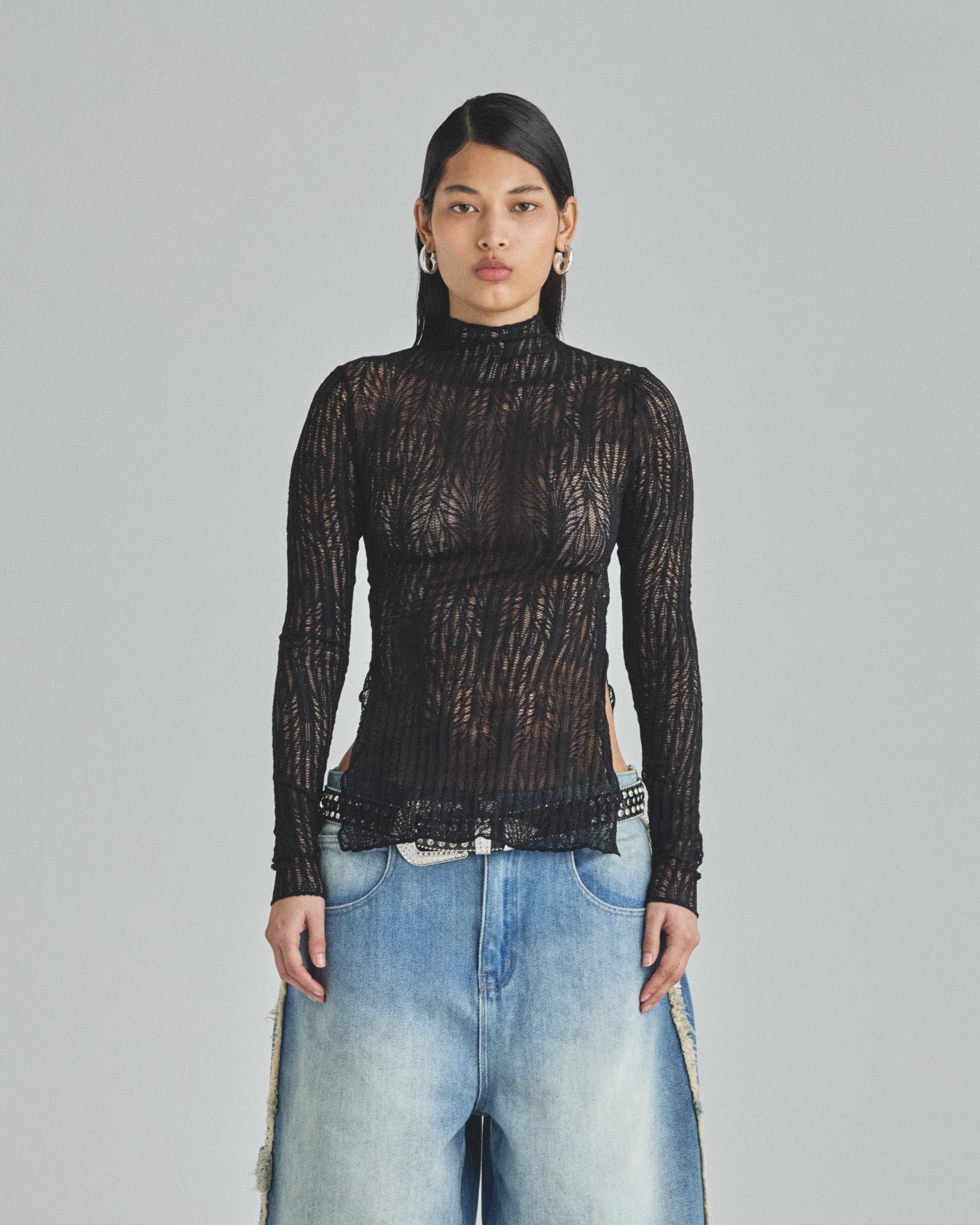 Undergold Basics Turtle Neck Top Transparent Black